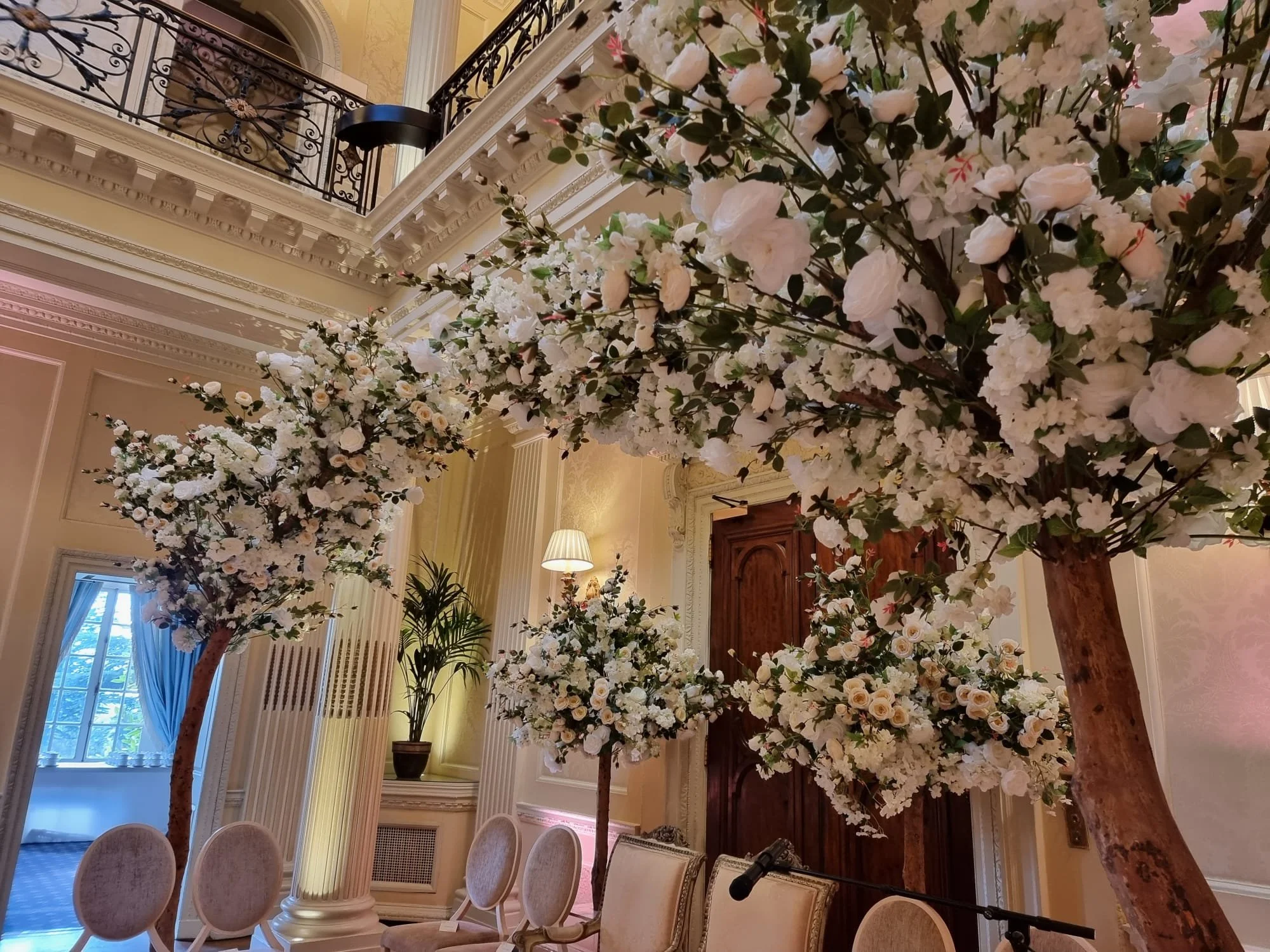 Whether placed at the top of an aisle, flanking a ceremony backdrop, or behind the top table, these trees offer luxurious height and visual impact, without overwhelming your venue. Available to hire across Hampshire, Midlands, South East, London, and throughout the UK.