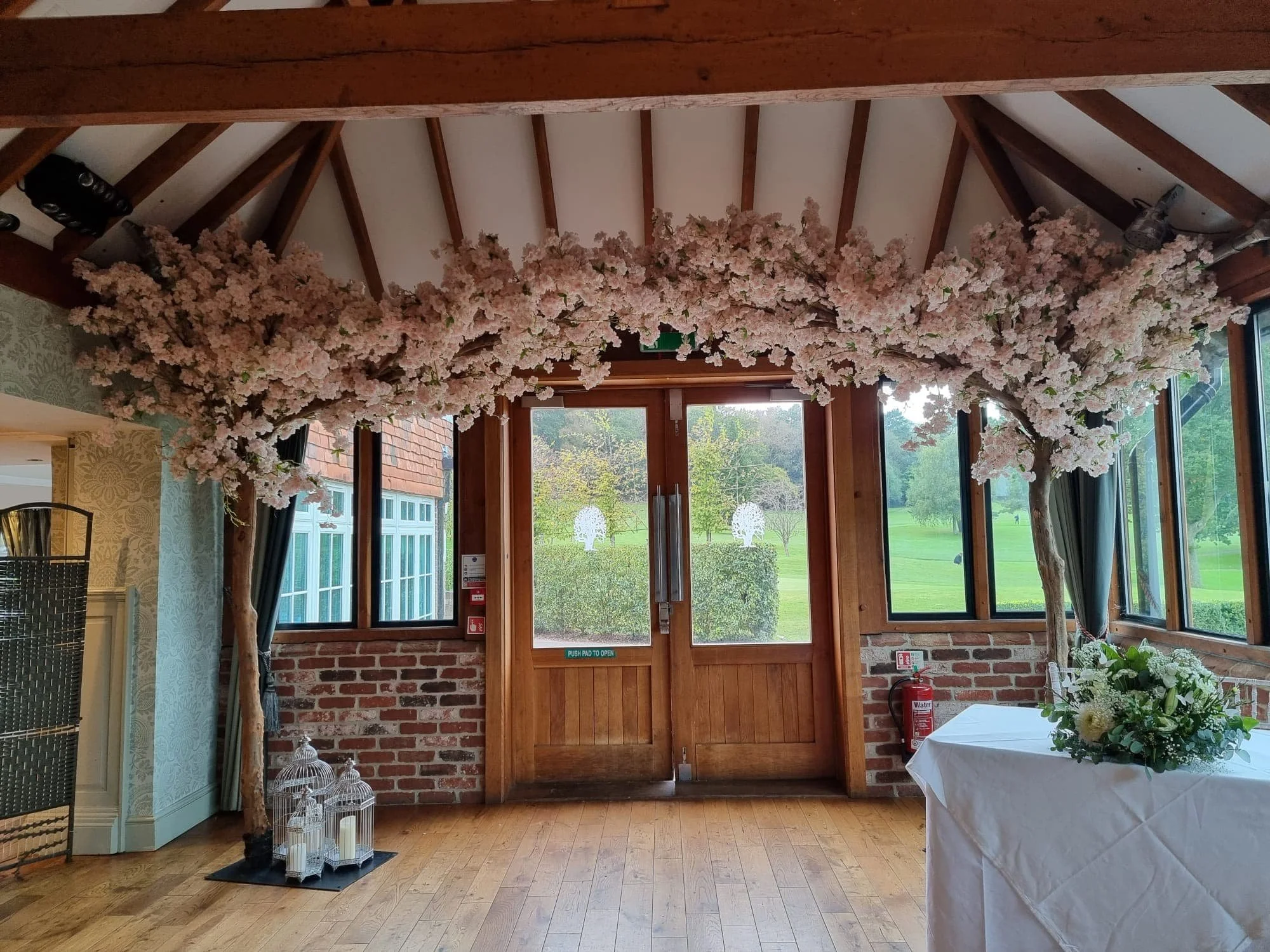 Our Pink Blossom Canopy Trees add soft blush tones and romantic charm to weddings and events across the UK. The cascading canopy of silk petals creates a fairytale atmosphere that feels both luxurious and natural.