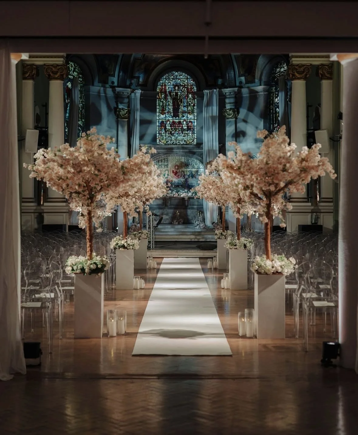 Create a breathtaking aisle by lining both sides with Pink Blossom Trees, or place them at ceremony entrances for a romantic frame.