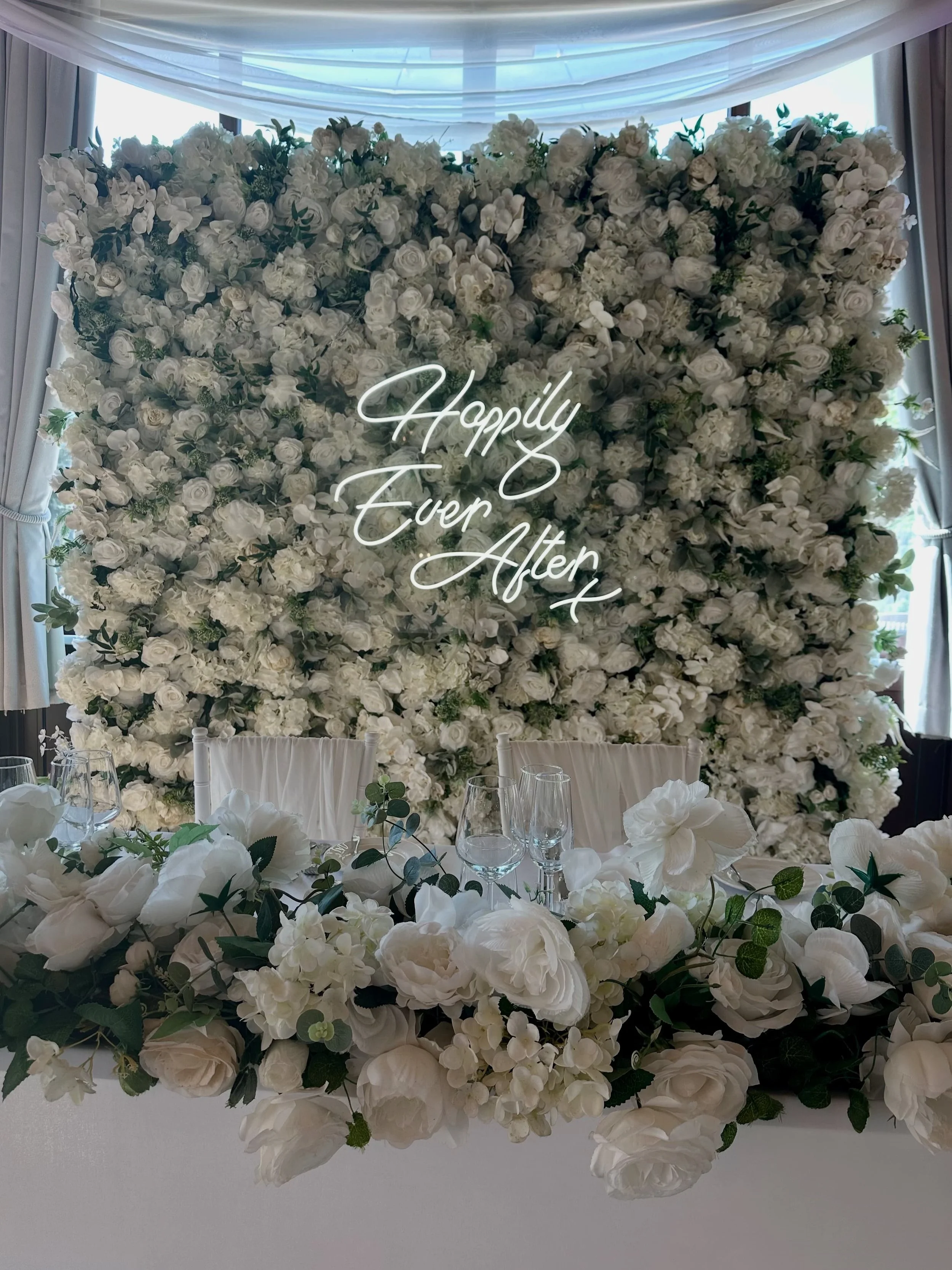 Our White Floral Moongate is a modern take on the classic floral arch, featuring a perfectly circular design filled with silk white roses, delicate florals, and soft green foliage. Its balanced shape makes it a stunning focal point for ceremonies, entrances, or romantic photo opportunities.