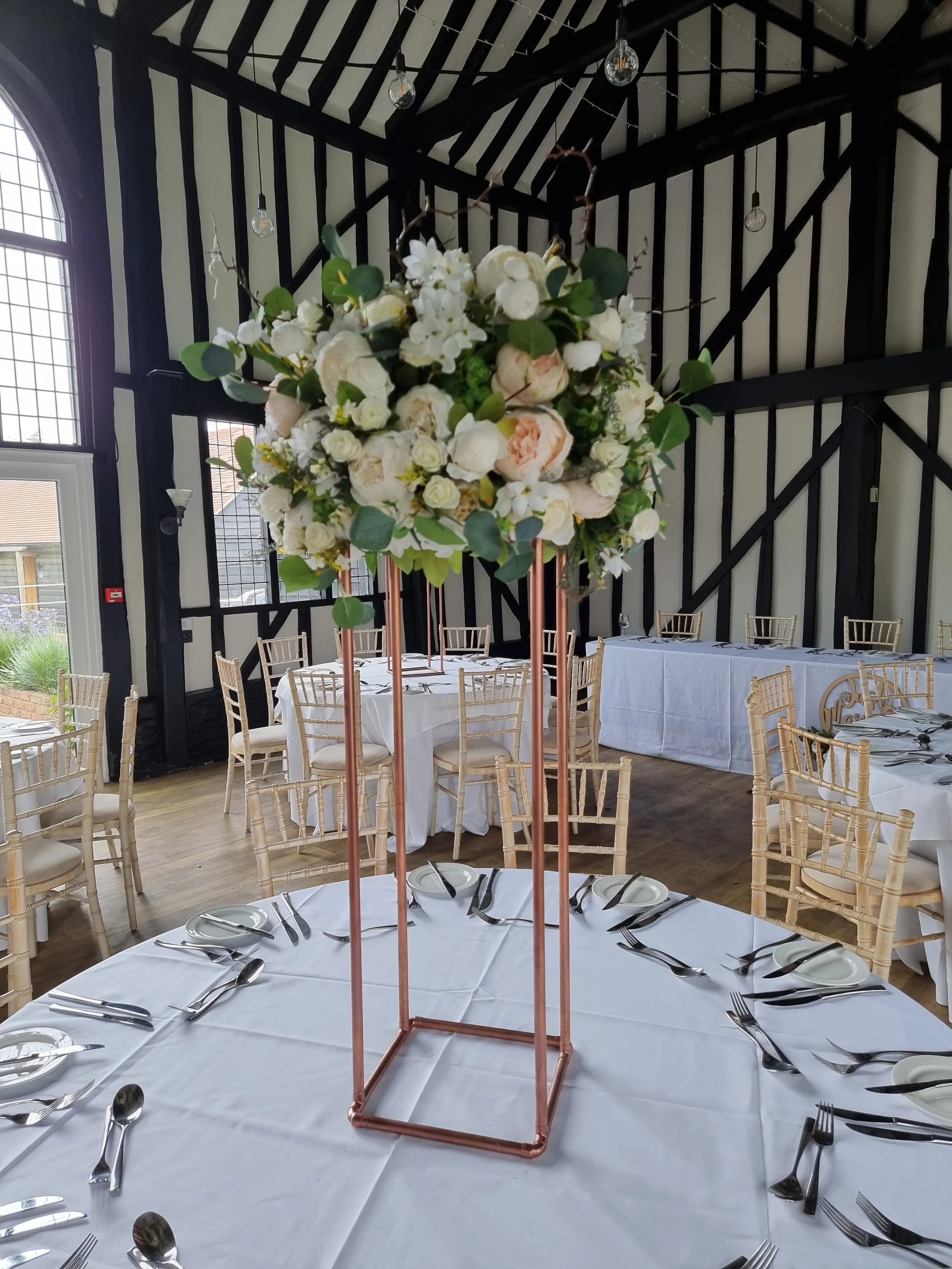 Pair your centrepiece with these romantic floral elements for a cohesive, beautifully styled celebration.