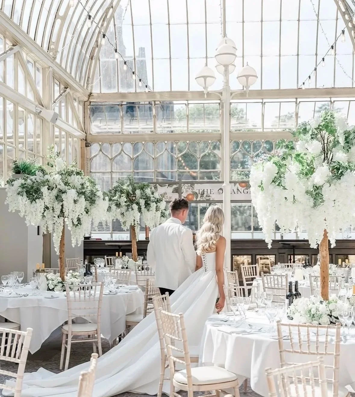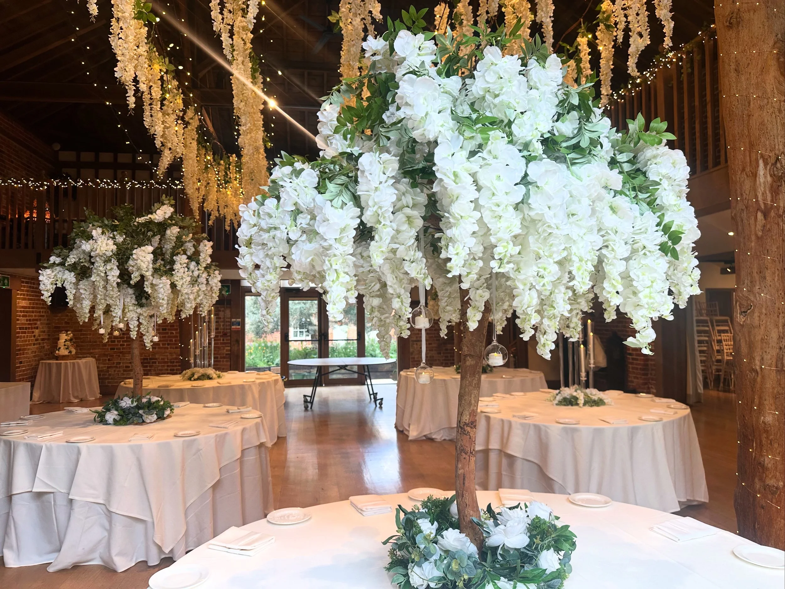 Standing at 5ft tall, our Wisteria Tree features cascading blooms and soft greenery, bringing gentle movement and romantic height to aisles, entrances, and reception spaces across the UK.
